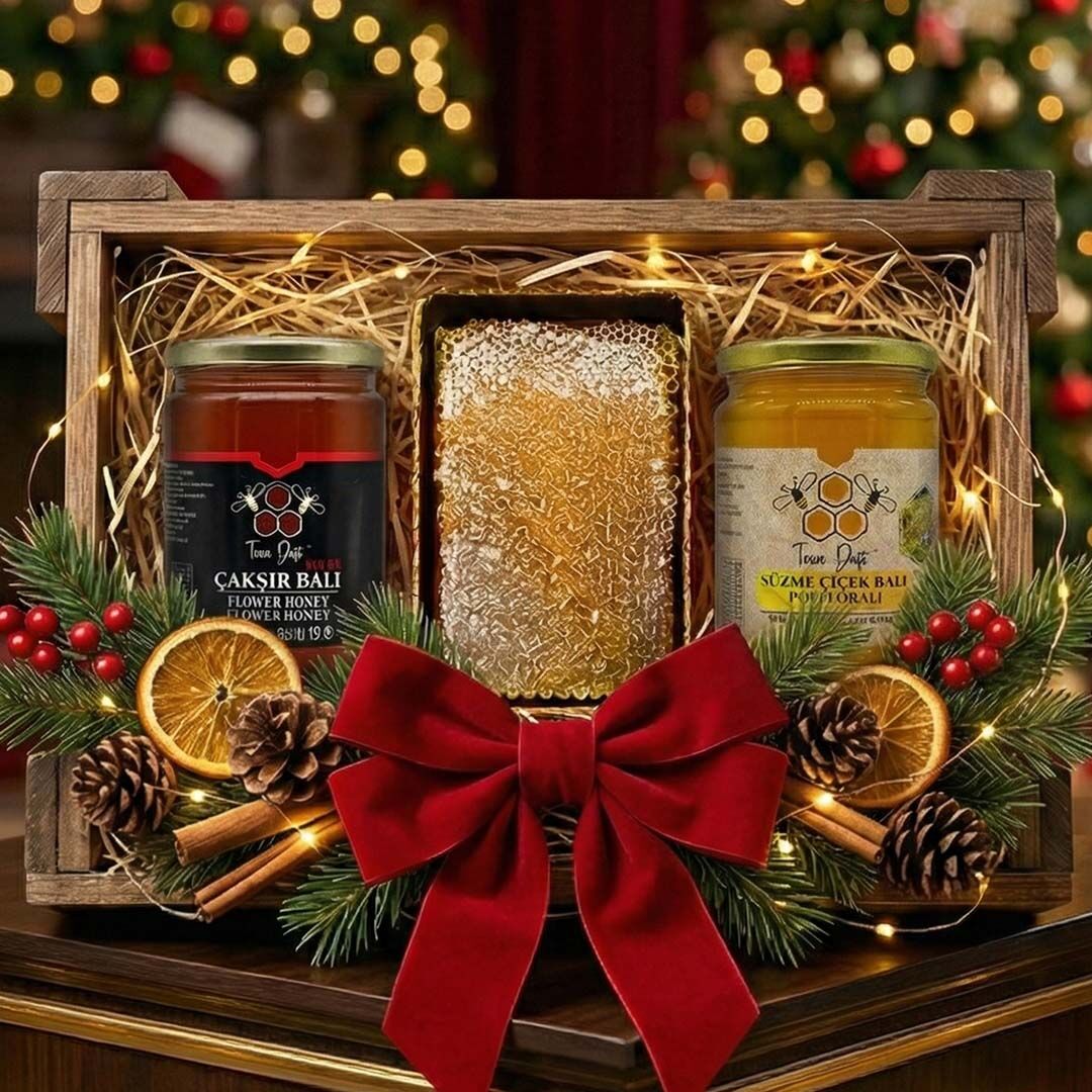 Avantajlı Yılbaşı Paketi - Süzme Çiçek Balı 860 gr - Petek Bal 1 kg - Çakşır Balı 860 gr