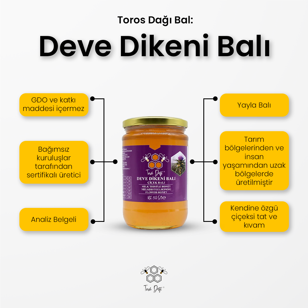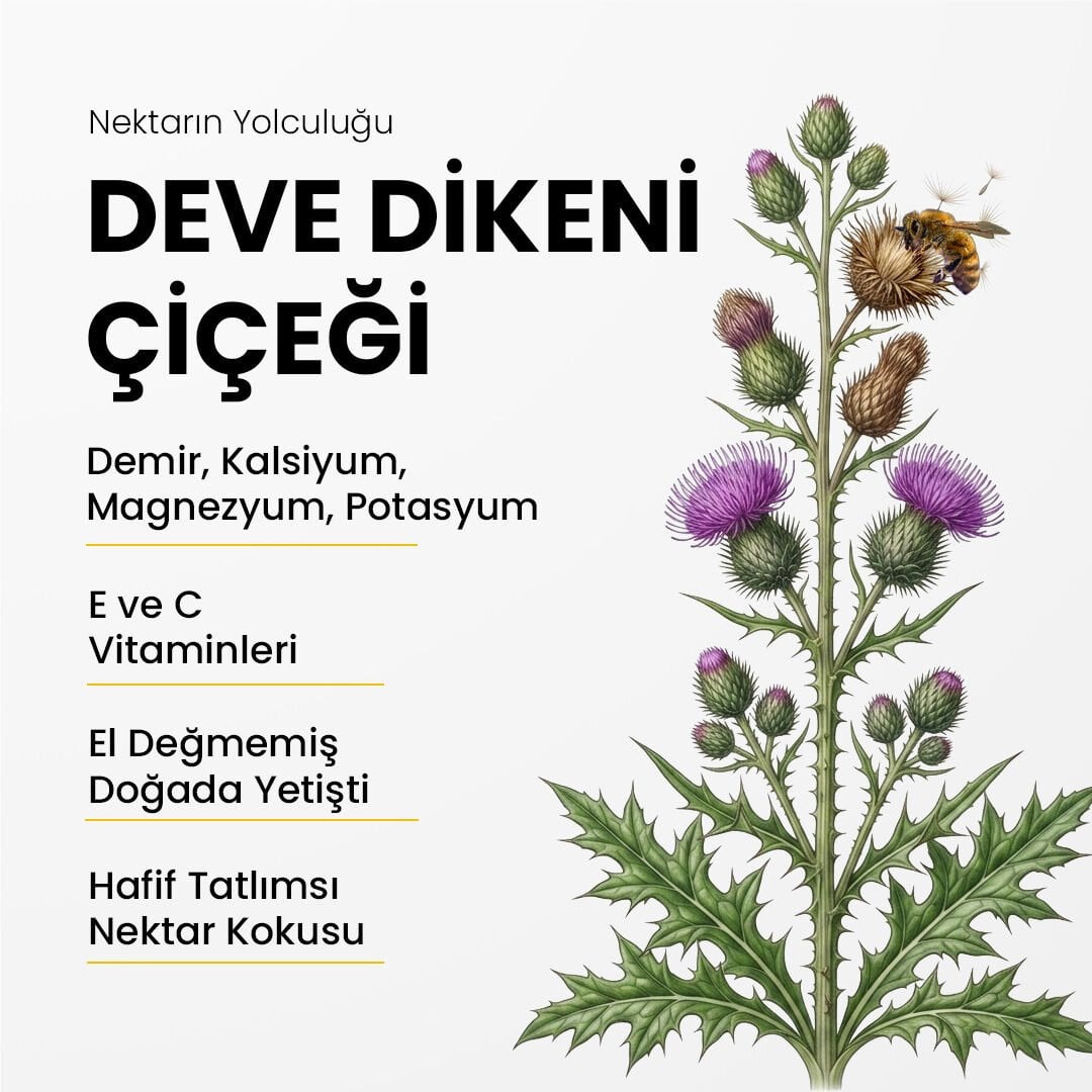 Anadolu’nun Aksaray bölgesinde doğal olarak yetişen deve dikeni çiçeklerinden elde edilen Deve Dikeni Balı, kendine has floral yapısı ile öne çıkar. İlkbaharın sonlarında açan deve dikeni çiçekleri, arılar için eşsiz bir nektar kaynağıdır.