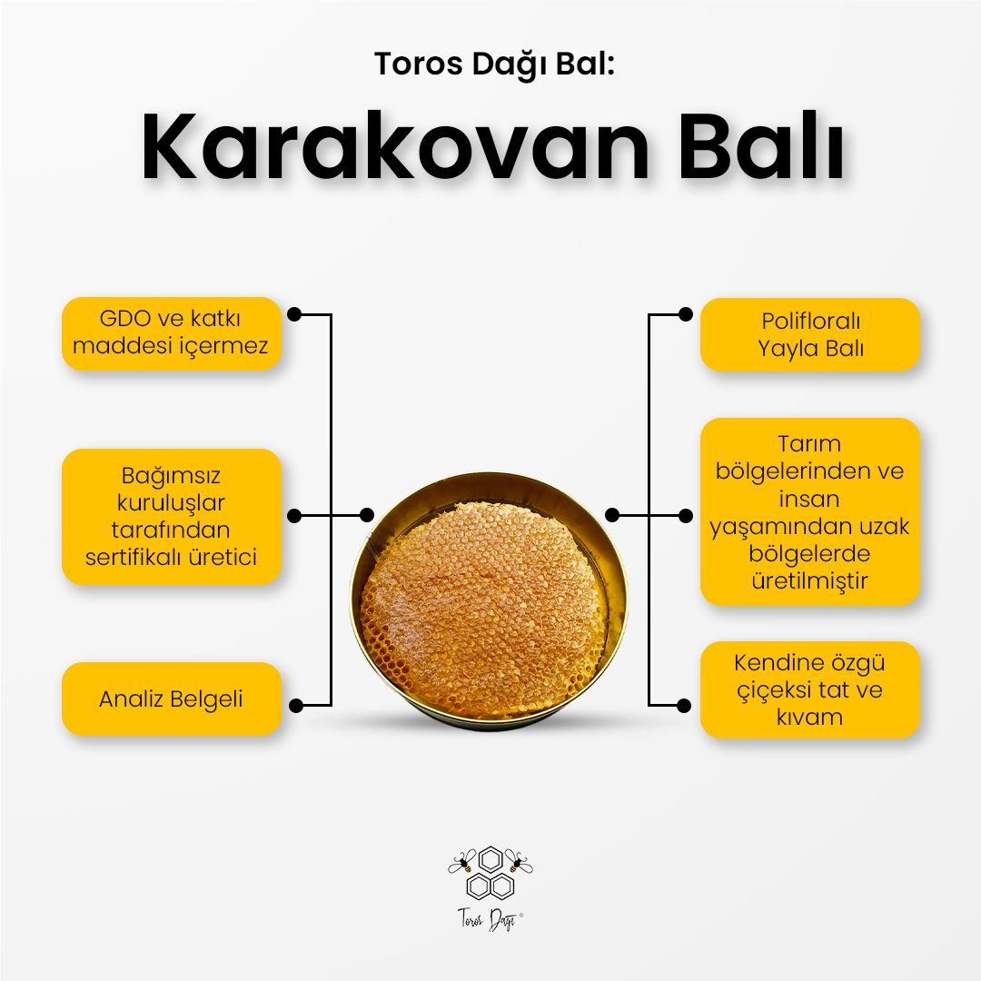 Böylece karakovan balı, kovandan çıktığı haliyle, işlem görmeden ve süzülmeden doğrudan tüketiciyle buluşur. Bal mumu, yapısı gereği ağız ısısıyla yumuşayarak sakızımsı bir kıvam alır; bu nedenle ağızda erimemesi son derece doğaldır ve ürünün doğal olduğunun göstergesidir.