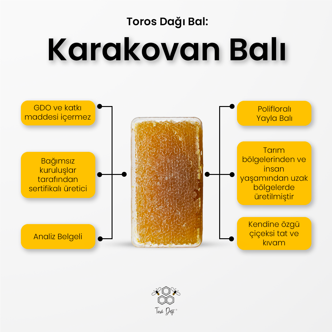 Böylece karakovan balı, kovandan çıktığı haliyle, işlem görmeden ve süzülmeden doğrudan tüketiciyle buluşur. Bal mumu, yapısı gereği ağız ısısıyla yumuşayarak sakızımsı bir kıvam alır; bu nedenle ağızda erimemesi son derece doğaldır ve ürünün doğal olduğunun göstergesidir.