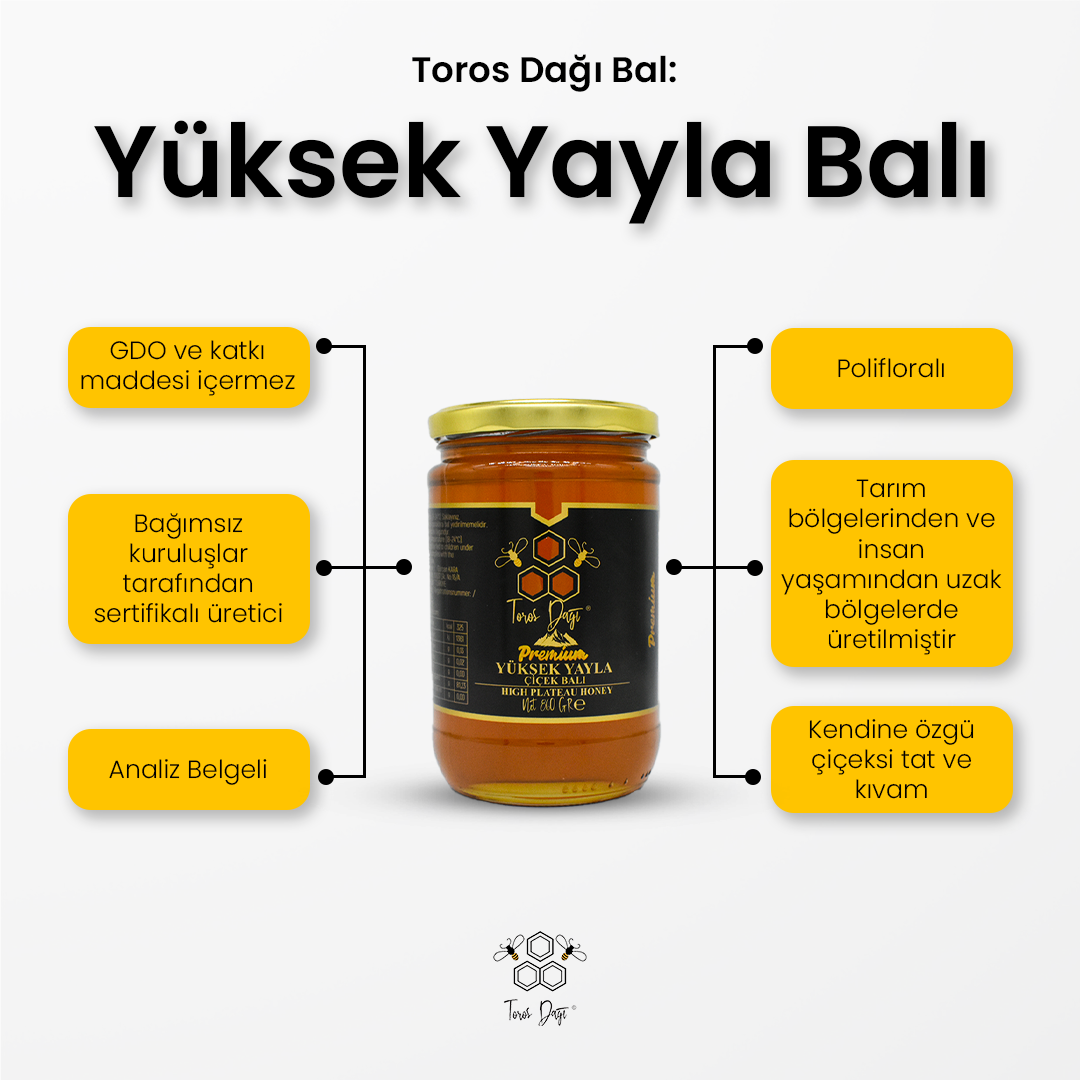 Toros Dağlarında hasat zamanı geldiğinde yayladan sofraya balın hikayesi başlar. Kovanlardan tek tek toplanan bal ürünlerinin her damlası Toros Dağları'nda özenle seçilen binbir çiçeğin seçilmiş nektarının kokusunu taşır. Temiz ve zengin bitki florasının bulunduğu yaylada ürettiğimiz bal ürünleri değerli ve lezzetli haliyle sofralarınıza sunulur.